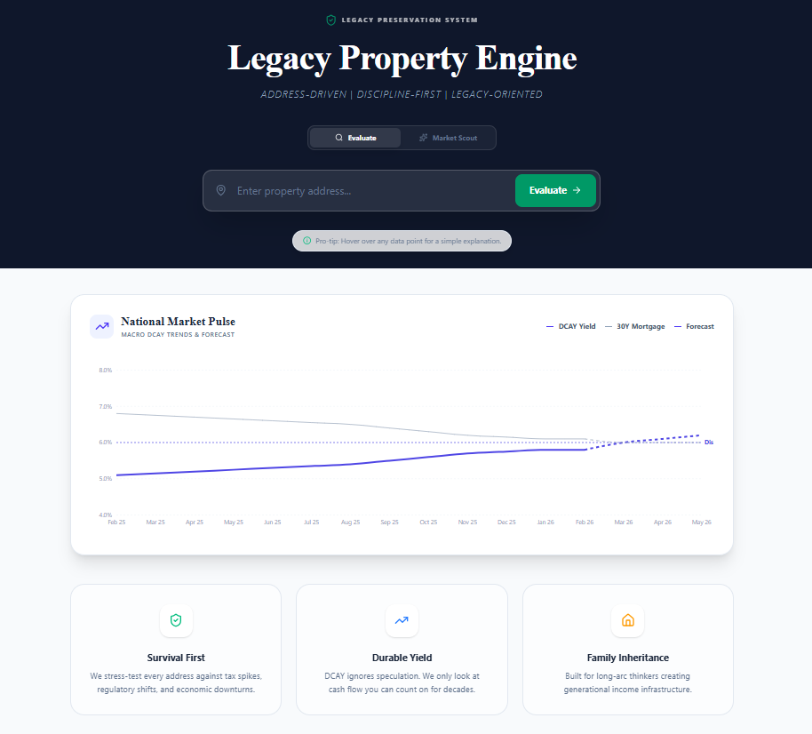 No Financial Advice: The outputs of the Legacy Property Engine and MacroStrat 2026 are for informational purposes only. They do not constitute financial, legal, or investment advice.